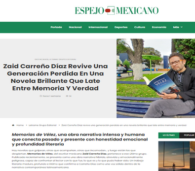 Memorias de Vélez; novela. Letrame Editorial. 2025